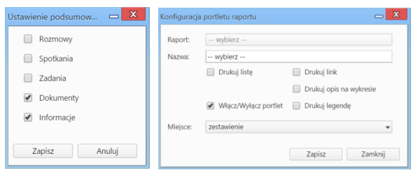 Rysunek 3: Okna konfiguracj portletów Podsumowanie oraz Raporty